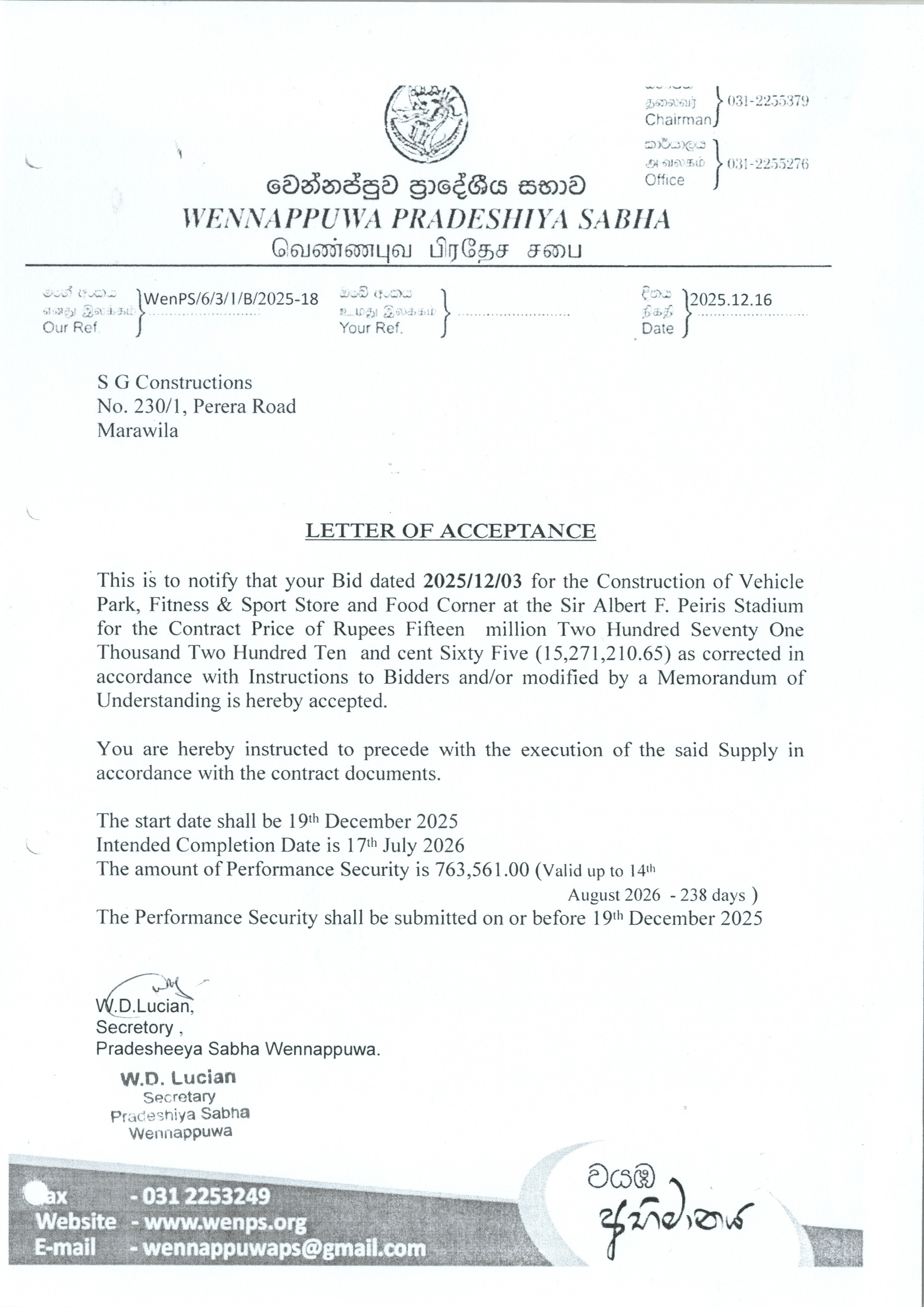 වෙන්නප්පුව ප්රාදේශීය සභාවේ සැපයුම් කරුවන් ලියාපදිංචිය