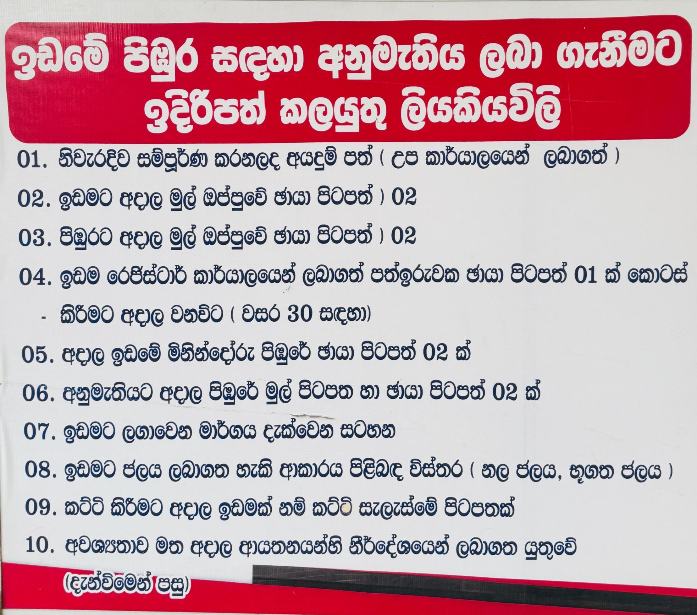 ඔප්පුවේ හා අනුමත කිරීමට ඇති පිඹුරේ චායා පිටපත රැගෙන තාක්ෂණ නිළධාරී මහතා හමු වී ගැටලු නිරාකරණය කරගත යුතුයි.